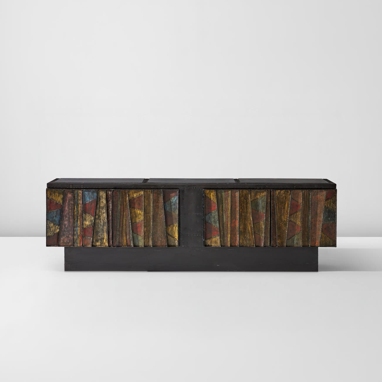 Produced by Paul Evans Studio, Plumsteadville, Pennsylvania, for Directional Furniture Company, New York, United States. Side of one door welded PAUL EVANS 68.