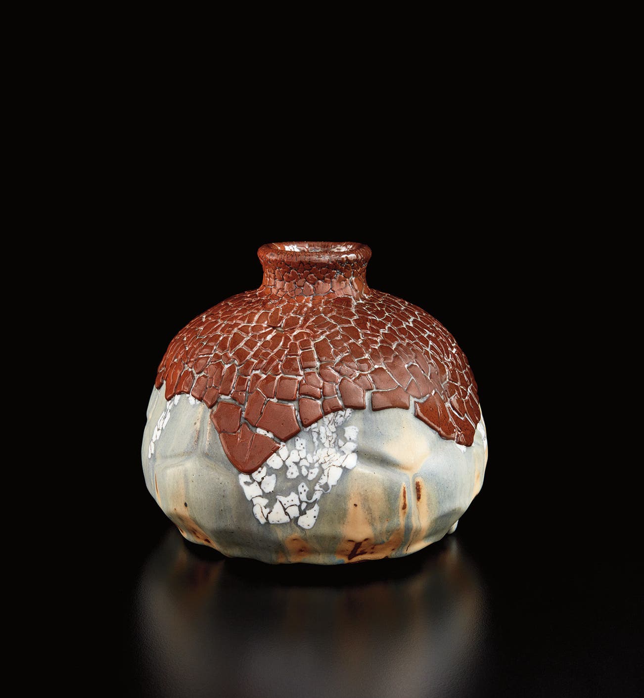 Glazed stoneware with peau de serpent effect.