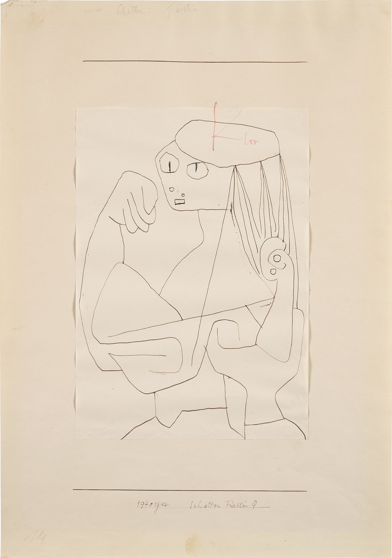 signed "Klee" upper right; titled, inscribed and dated "1940 y 14 Schatten Fürstin" lower edge of the artist's mount