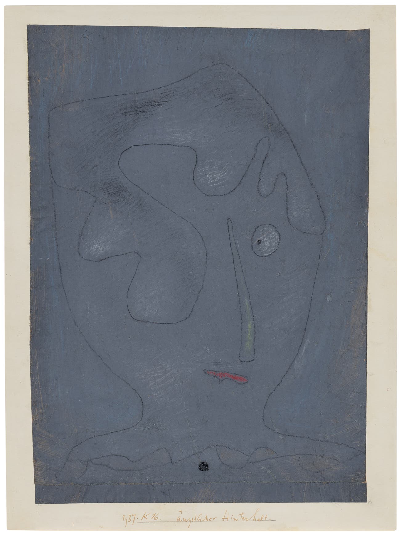 signed 'Klee' upper left; titled, numbered and dated '1937. K 16. Ängstlicher Hinterhalt' lower edge of the artist's mount