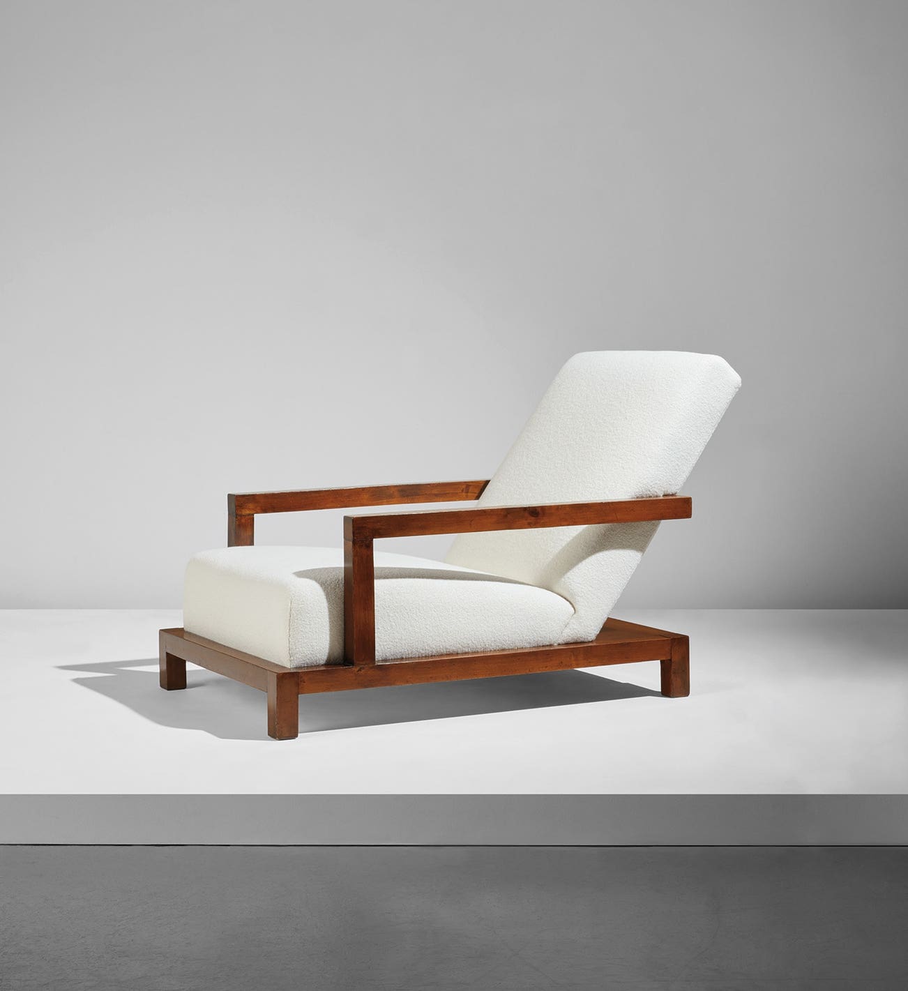 In 1934, Paul Lester Wiener designed the present model armchair for Dr. Fritz Wittels’ living room in New York City. Dr. Wittels, an early proponent of psychoanalysis and the first biographer of Sigmund Freud, commissioned Wiener to design a modern apartment that would also serve as a reception and treatment area for his patients. As such, Wiener’s designs were made with their psychological value and effect in mind. The apartment was primarily white with blue and red accents, and much of the furniture relied on geometric and architectonic forms. The present model chair, which was originally lacquered red, fit perfectly within this design scheme. In the November 1935 issue of Domus, Gio Ponti praised Wiener’s modern design and described him as a model for the avant-garde in the United States. Later in his career, Paul Lester Wiener achieved eminence for his collaboration with Le Corbusier on urban planning projects in South America and for redeveloping the Washington Square Park area of New York City in 1958.