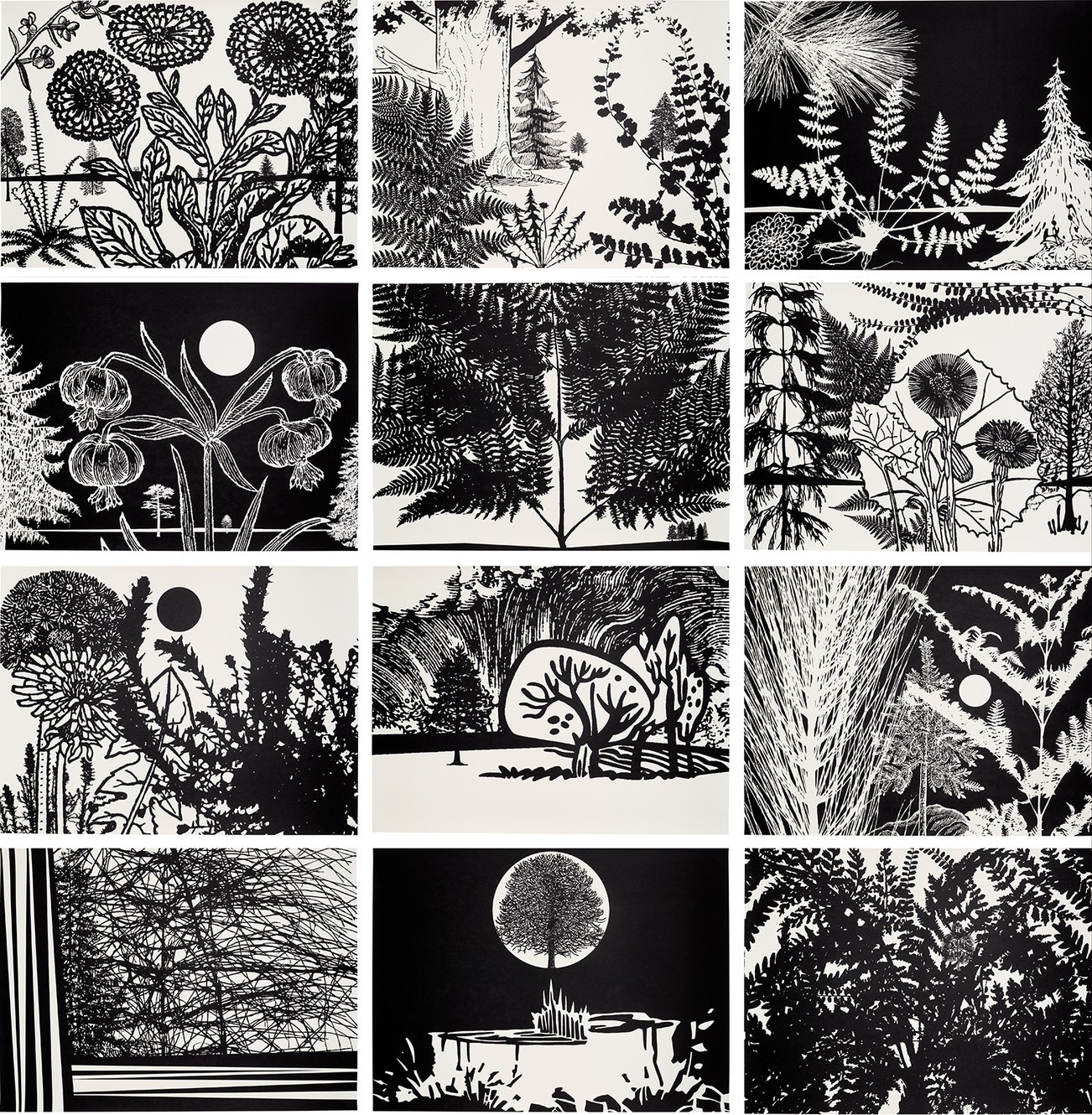 The complete set of 12 screenprints in black and white, on Somerset paper, the full sheets.