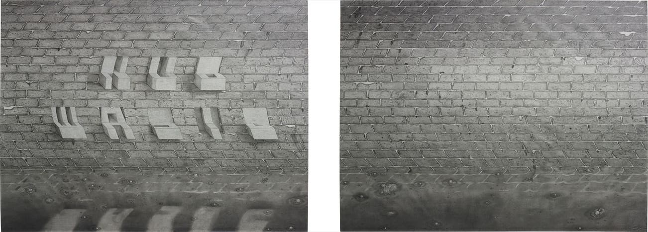 Signed, titled and dated 'Nobwaste Paul Noble 1998' lower left of the left sheet.