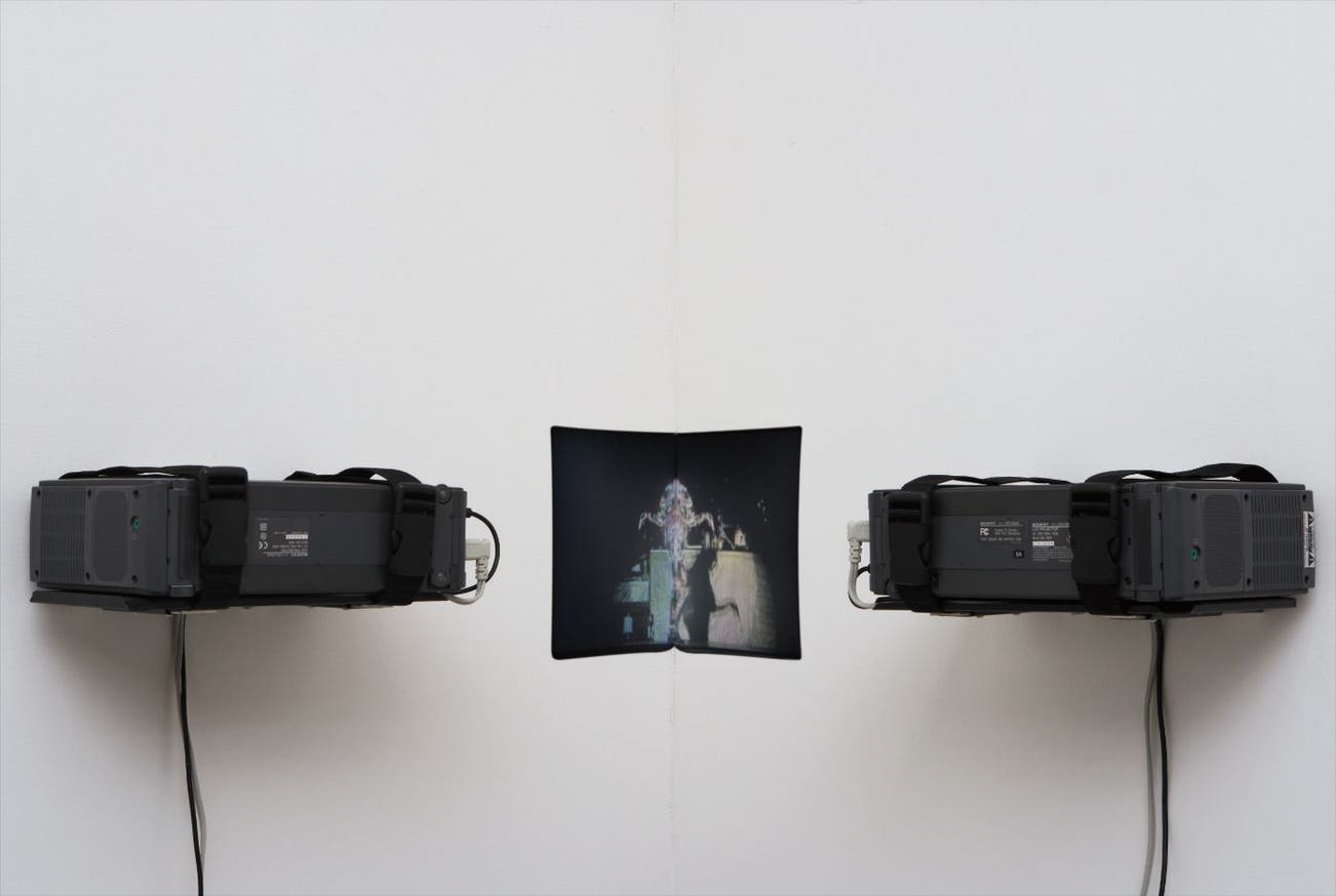 2 digital video loops (50 second loop), 2 metal armatures, 2 projectors, 2 DVD players, frame synchronizer