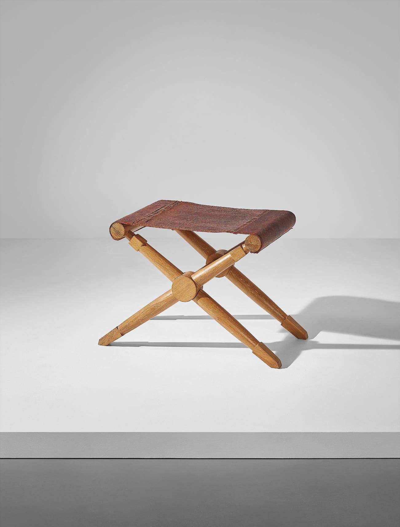 Oak, leather, brass nailheads.