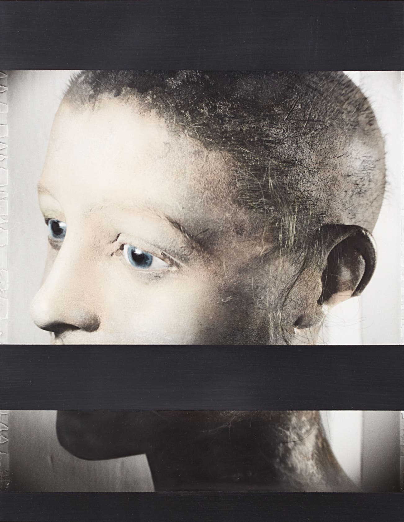 oil, enamel on gelatin silver print on paper