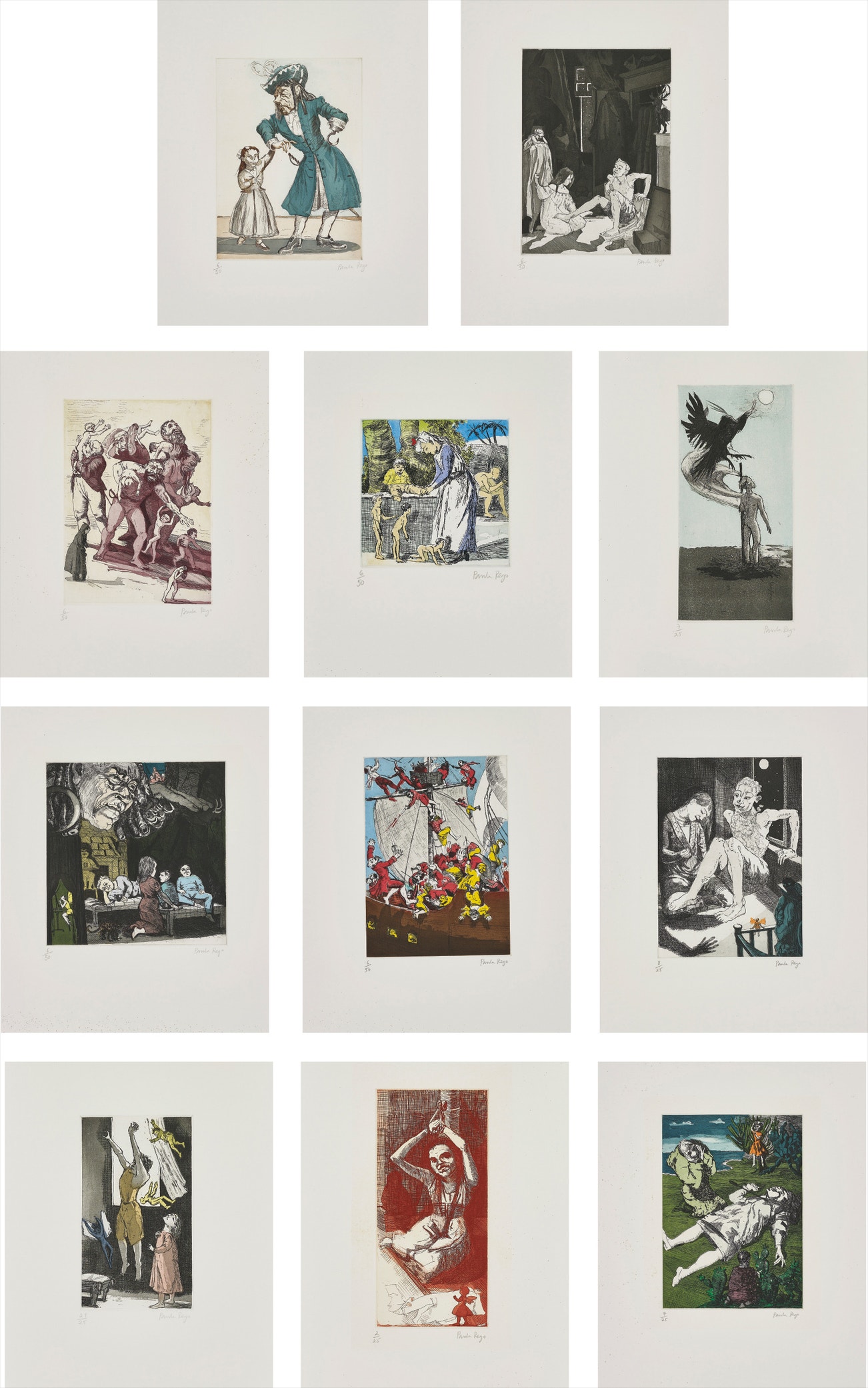 Eleven etching and aquatints, nine in colours, on wove paper, with full margins.