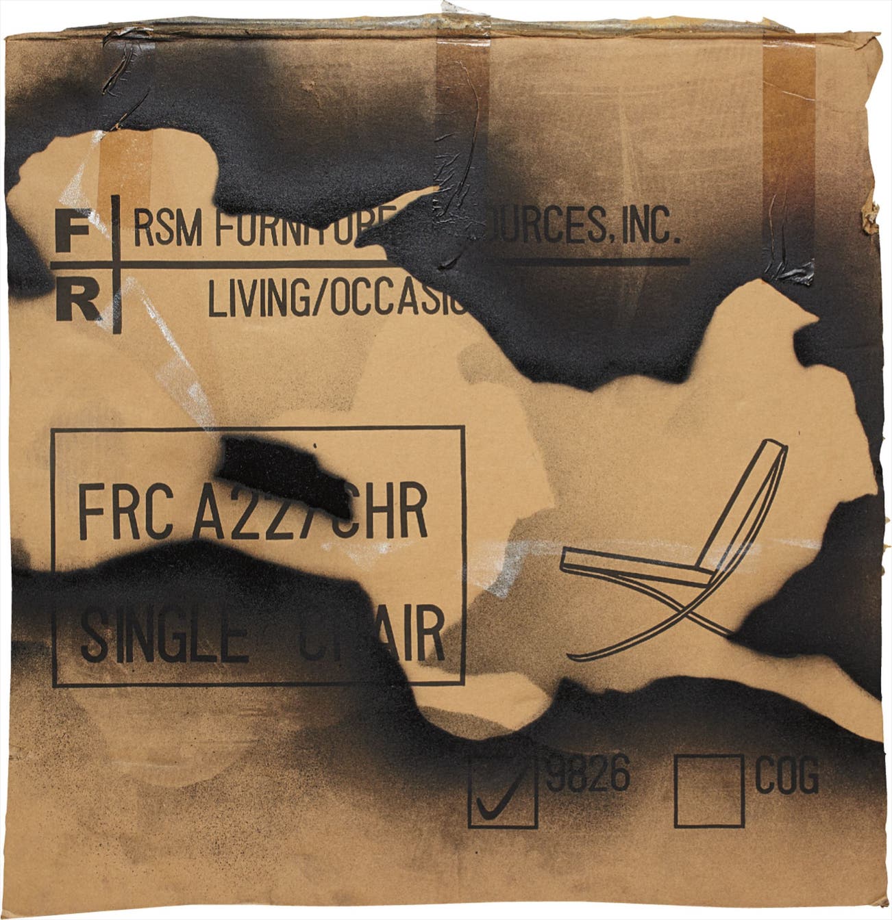 adhesive tape, spray paint on cardboard
