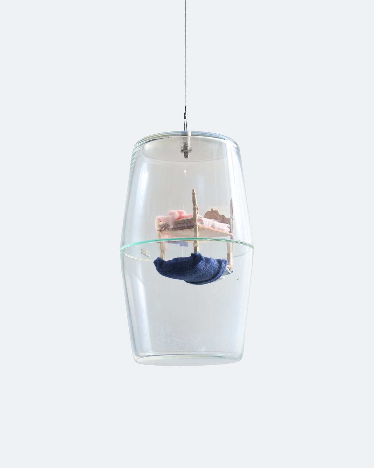 blown glass, carved basswood, cloth, pearl and hardware