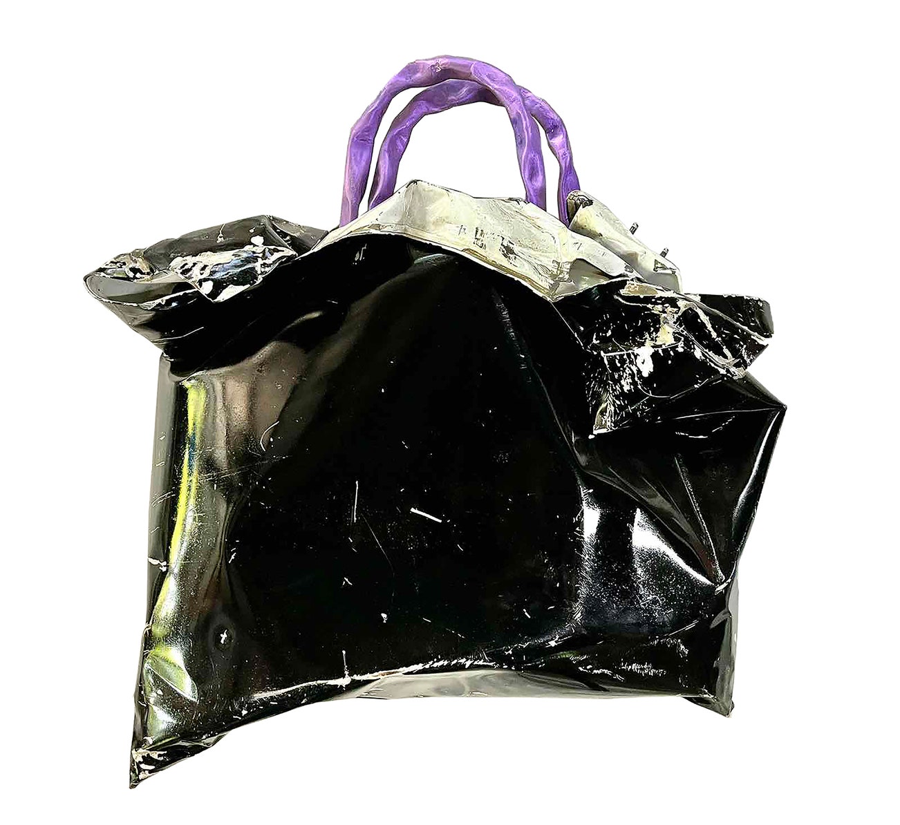 Handle with Care was created with the products of destruction; what looks like a crumbled shopping bag in the artwork is in reality a crushed car hood. Rethinking the notion of responsibility through materiality, Pete Jimenez implores the viewer to exercise caution and mindfulness in their daily lives and relationships.