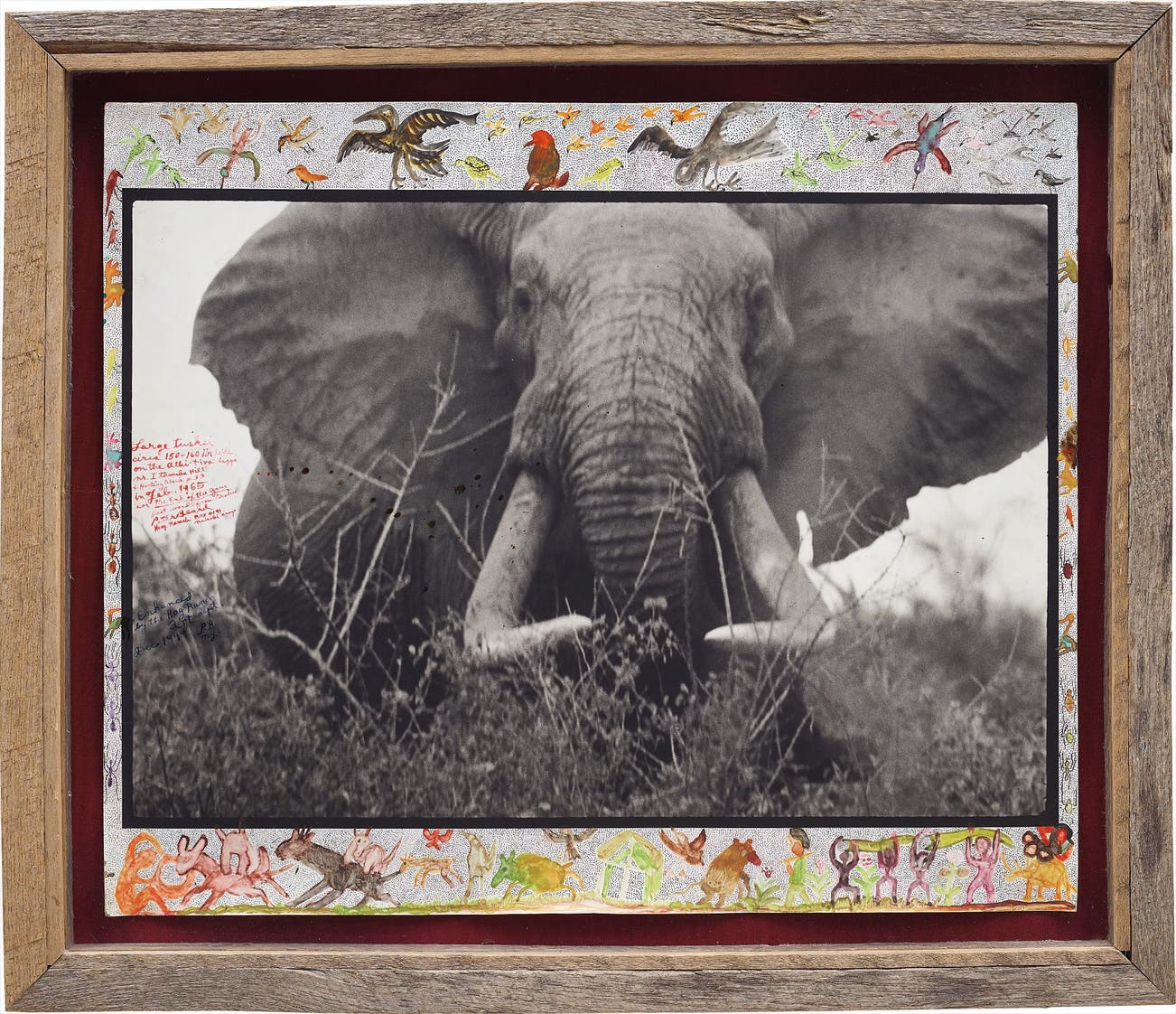 Gelatin silver print with watercolour paint and ink, executed later.