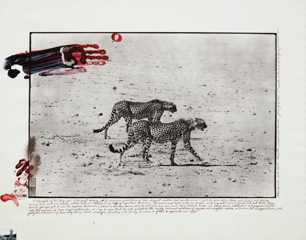 Gelatin silver print with ink, affixed feathers and gelatin silver prints, executed later.