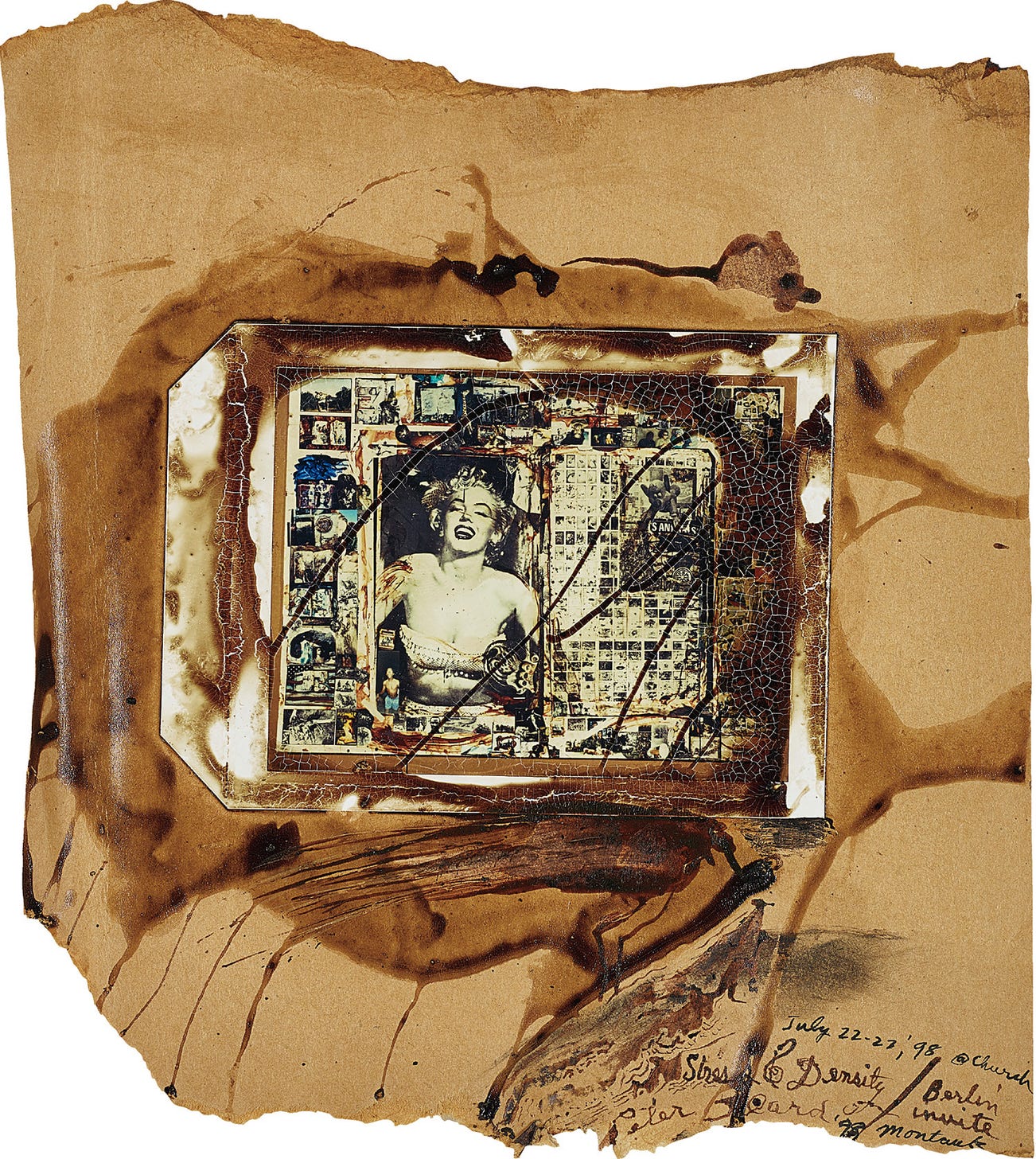 Unique work, comprising a Polaroid print mounted to brown paper with applied blood and ink.