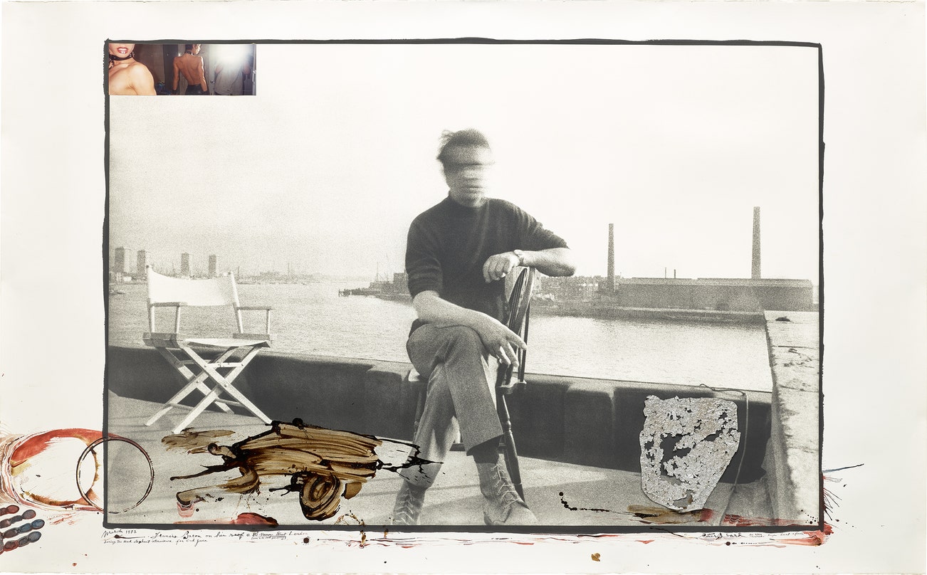 Unique work comprised of a platinum print, printed 2000 by William Ingram, with applied blood, paint, ink, foil, and affixed photograph.