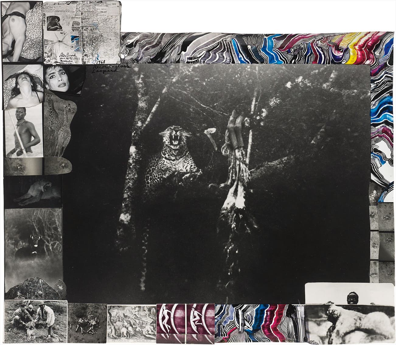Gelatin silver print with ink, paint, affixed gelatin silver prints and matchbox, printed later.
