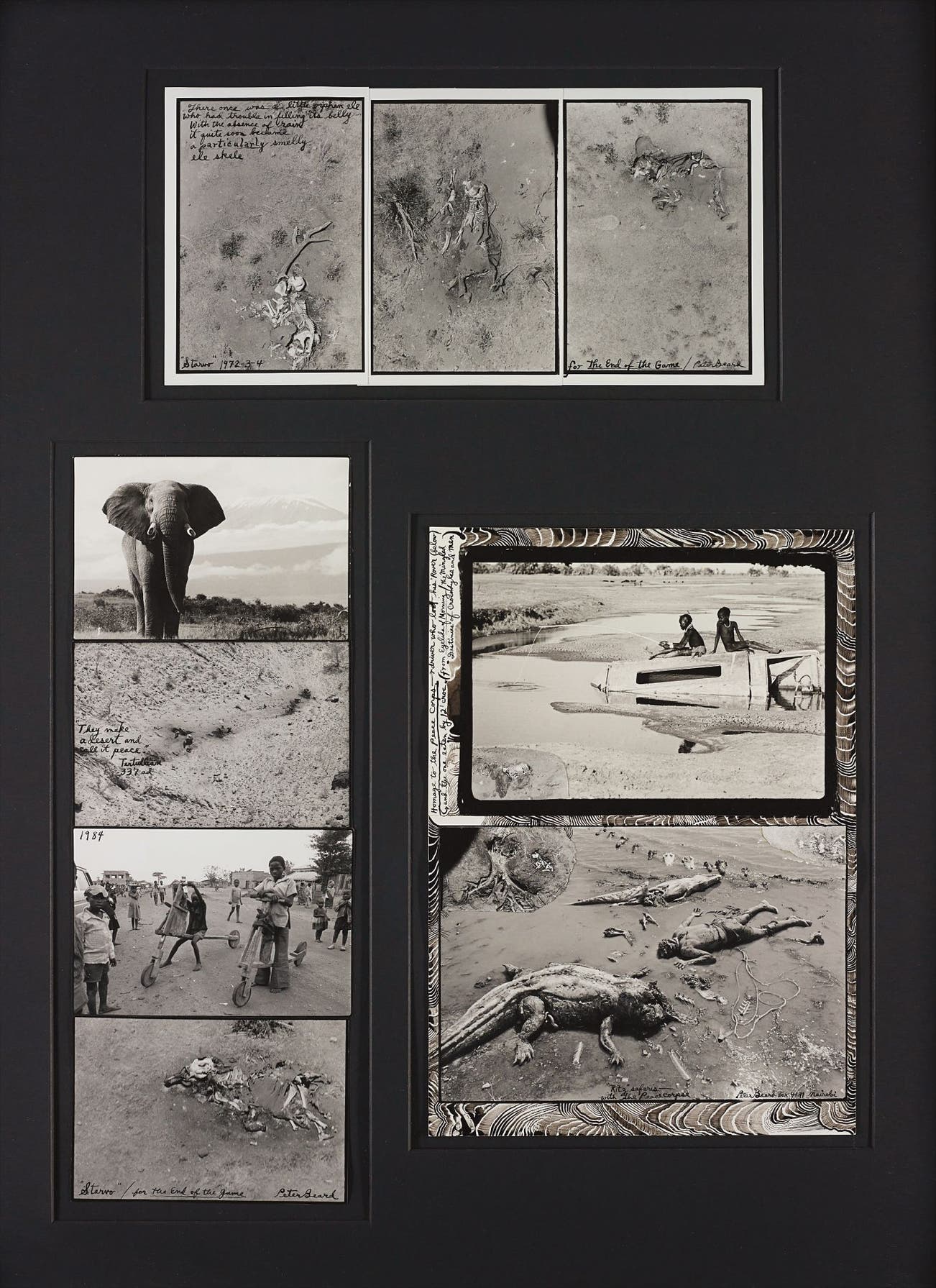 Titles include: (i) Starvo, 1972-1974; (ii) Ele in front of Kilimanjaro, 1964; They make a desert and call it peace, n.d.; Untitled, 1984; Starvo, n.d.; (iii) "Ritz" Safaris - With The Peace Corpse/ Homage to the Peace Corps, 1965