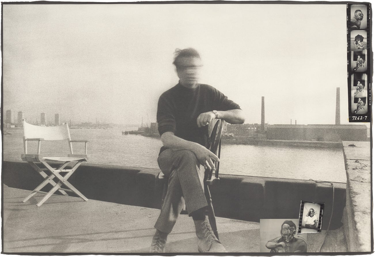 Francis Bacon on his roof at 80 Narrow Street, London (soon to be lost gambling), during the dead elephant interviews, March