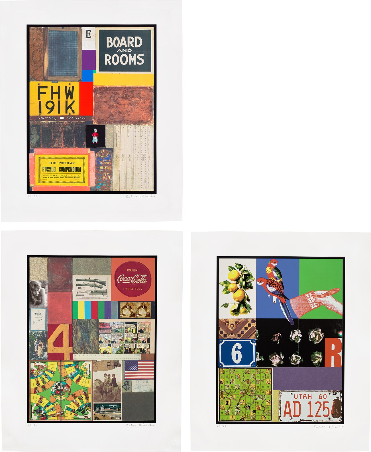 Three screenprints in colours (two with diamond dust), from the set of five, on Somerset paper, with full margins.