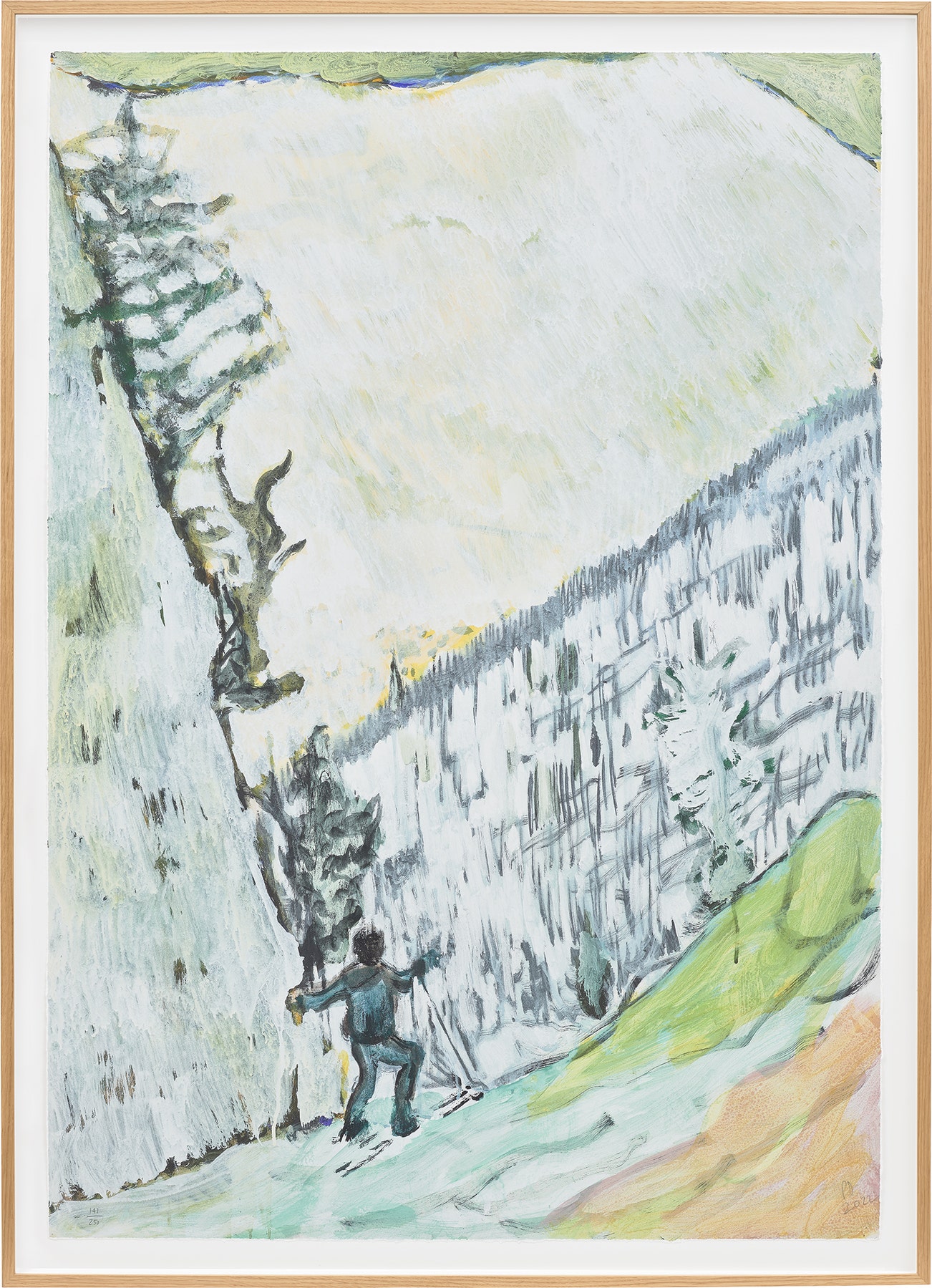 Doig draws on personal memories and source imagery in his pursuit of exploring the slippage between reality, imagination and memory through painting. The material properties of paint and expressive possibilities of color thereby serve to approximate the foggy, inarticulate sensation of remembering. His practice maintains a thin and balanced line between landscape and figure, superimposing photographic imagery and memories, both real and imagined.