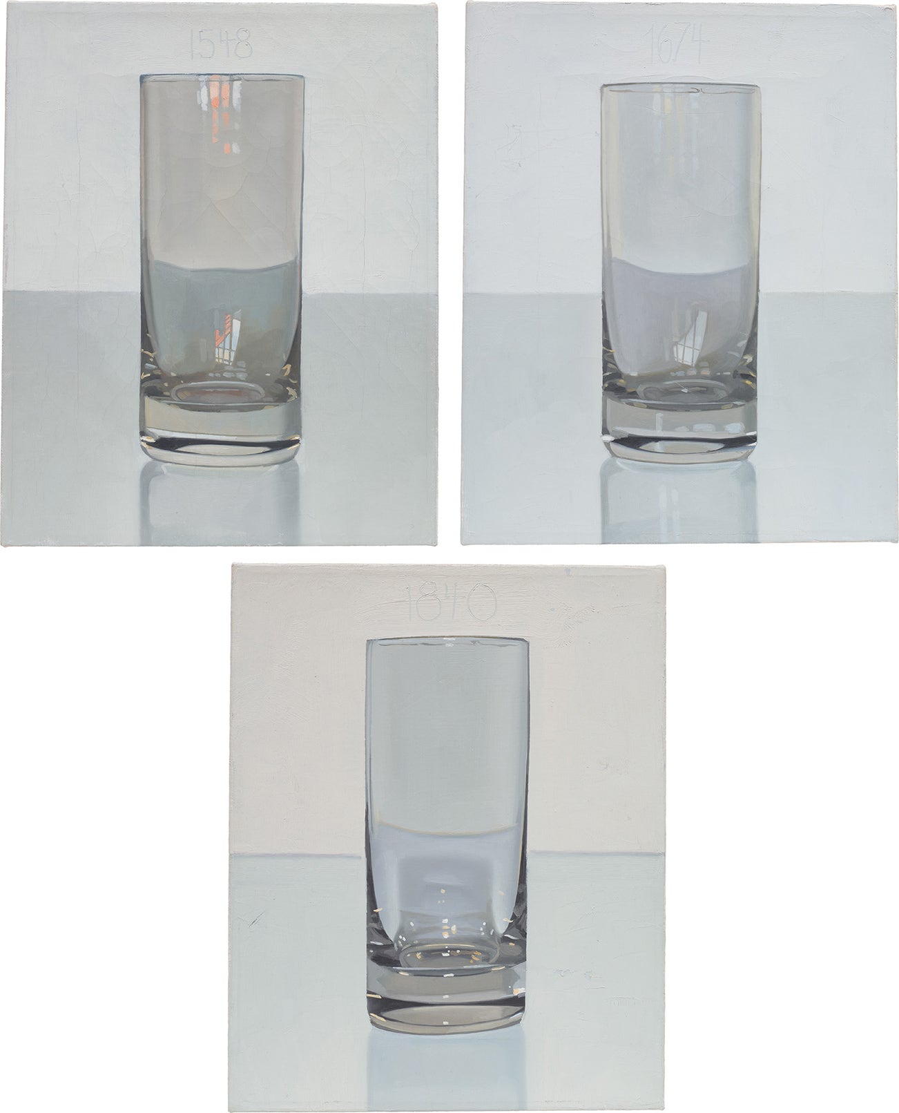 each signed, titled and dated (i) ‘Tag um Tat guter Tag II Peter Dreher 2000’; (ii) ‘Tag um Tat guter Tag II Peter Dreher 2001’; (iii) Tag um Tat guter Tag I Peter Dreher 1840 2001’ on the reverse