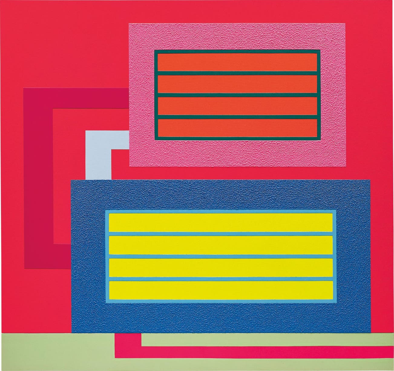 acrylic, fluorescent acrylic and Roll-a-Tex on canvas