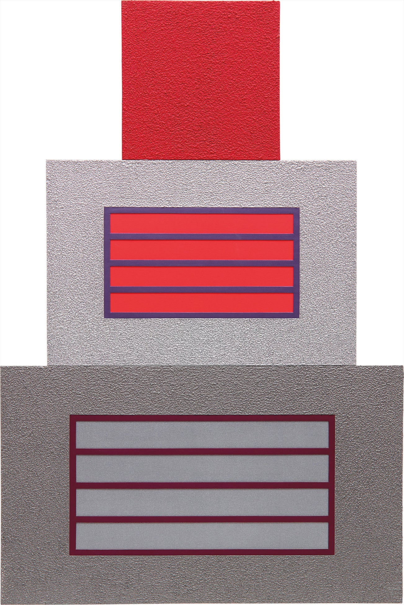 acrylic, Day-Glo, metallic acrylic and Roll-a-Tex on canvas
