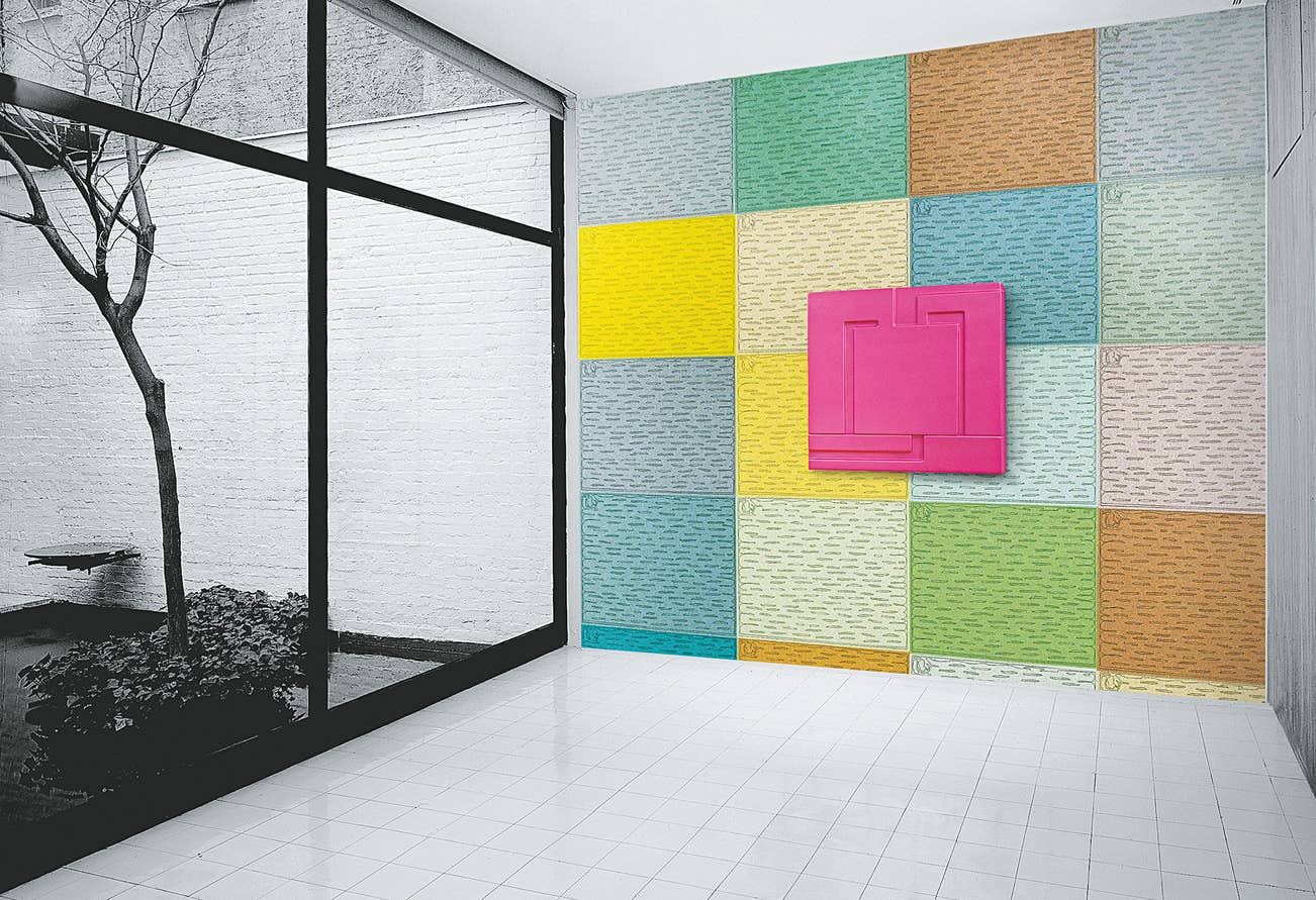 A set of 48 screenprints in 16 colours, on wallpaper, the full sheets, to be installed pasted on a wall to cover it entirely.
