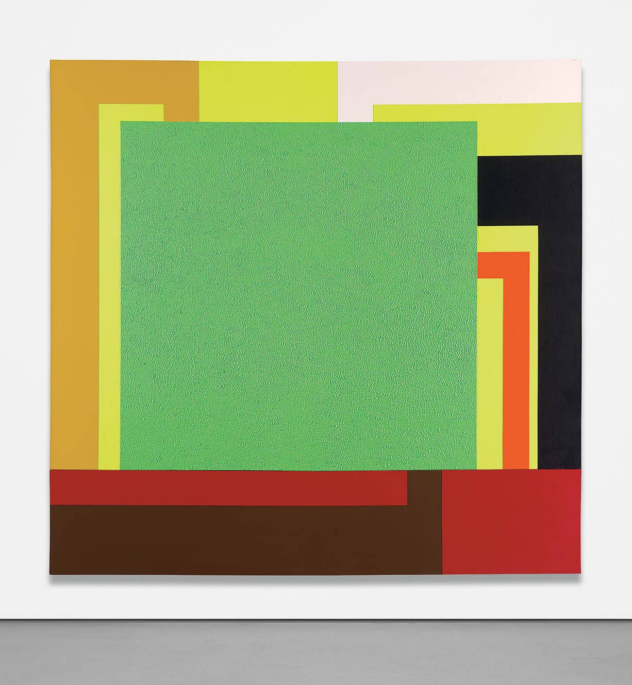 Building upon the vocabularies of Minimalism, Color Field painting and Constructivism, Halley defies such categorizations in his endeavor to place content back into formalism. Informed by the writings of French philosopher and social theorist Paul-Michel Foucault, he considers his paintings to be referential rather than abstract, actively questioning the supposed neutrality of traditional modes of abstraction. In 303, a neon green square dominates the composition – a nucleus from which a network of conduits enters from every direction. The increasing visual complexity of these early 1990s paintings evokes a plethora of references to our postmodern age: “a diagram of a microprocessor plugged into a circuit board; a hospital patient attached to drips and monitors; a swinger seeking polymorphous satisfaction” (Pepe Karmel, Conceptual Abstraction, New York, 2012, p. 30).