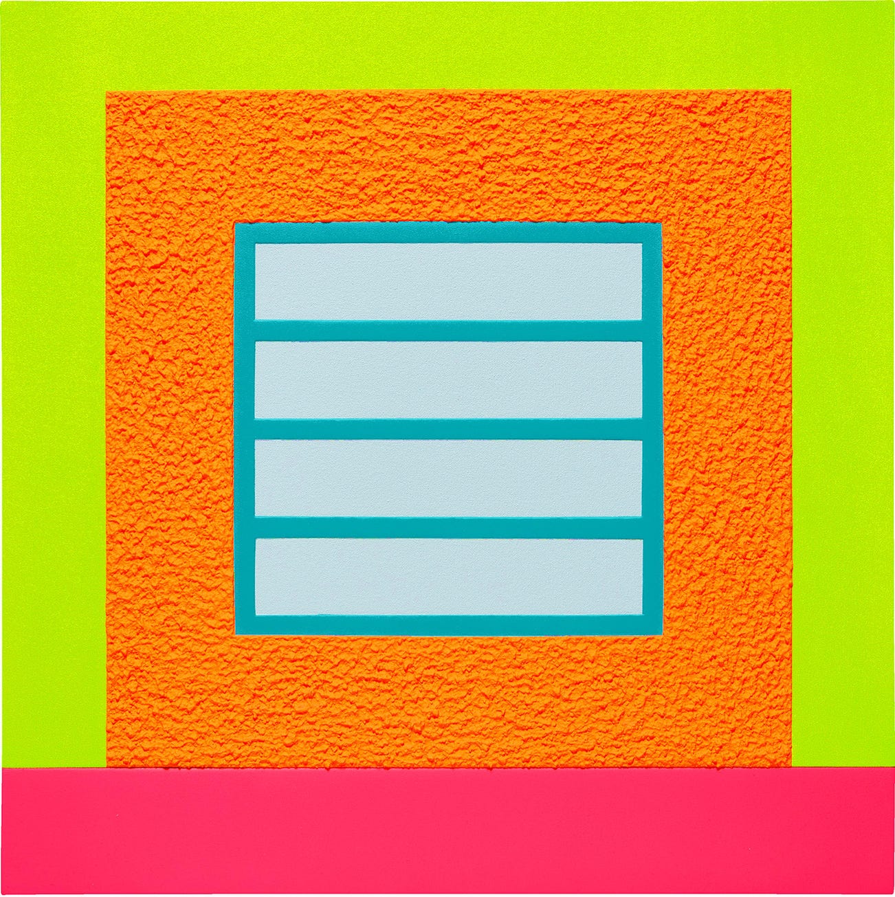acrylic, DayGlo acrylic and Roll-A-Tex on canvas, in 2 parts