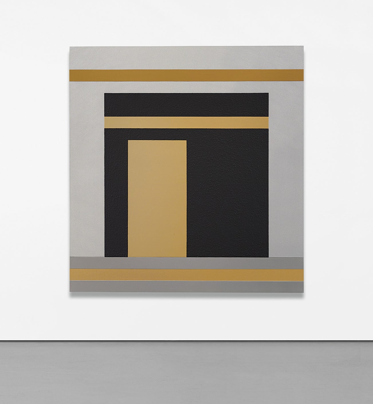 Direction No. 7 is a powerfully commanding example from Peter Halley’s Direction series, influenced by the demandingly austere authority of the Kaaba, Mecca, to which all Muslim prayer is directed. Included in the artist’s exhibition at Mottahedan Projects, Dubai, Direction No. 7 is arresting and immediate, constructed with Halley’s rigorous formal language and bold aesthetic in uniform silver, gold and black. Executed in textured Roll-a-Tex, Halley’s physical signifier and ready-made imitation of painterly impasto, Direction No.7 takes on a distinct architectural quality, intensified by the geometric, structural precision of the composition.