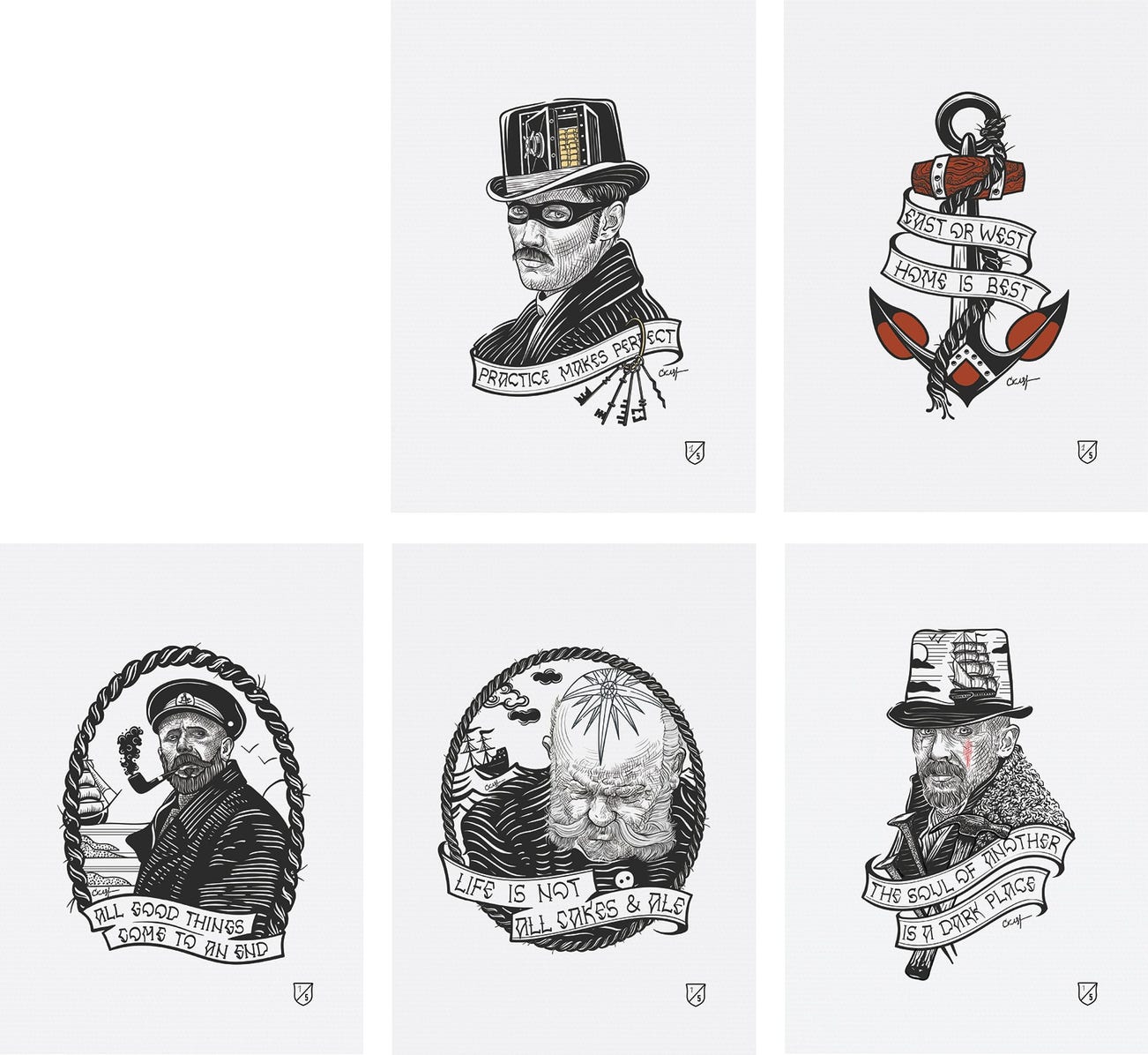 Five works: i) Practice Makes Perfect; ii) East or West Home is Best; iii) All Good Things Come to an End; iv) Life is not all Cakes & Ale; v) The Soul of Another is a Dark Place