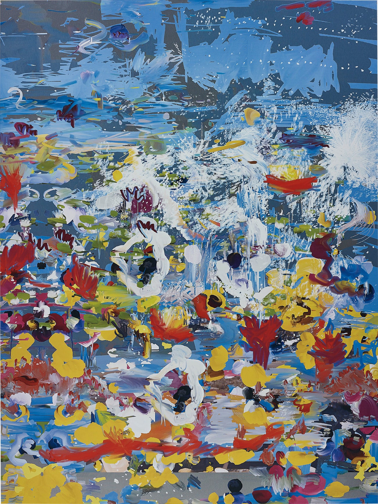 AmericanTaking from the tradition of gestural painting, Los Angeles-based artist Petra Cortright uses floral imagery to recreate Monet-type works on aluminum. But unlike those who preceded her, Cortright is digitally charged in her practice and renders analog images into "digital brushstrokes." She sources her images online and manipulates them in Photoshop in the hopes of constructing a palimpsestic sprawl. With the hint of glitch and a pinch of selfie culture, her work is self-reflexive in that it studies the progression of Abstract Expressionism into our current historical moment.