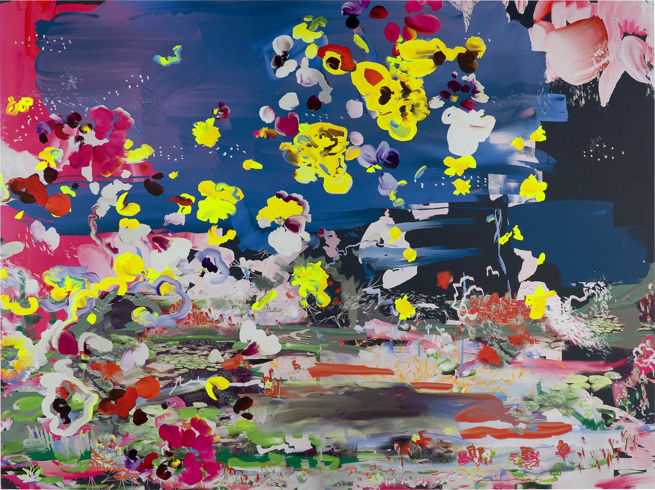AmericanTaking from the tradition of gestural painting, Los Angeles-based artist Petra Cortright uses floral imagery to recreate Monet-type works on aluminum. But unlike those who preceded her, Cortright is digitally charged in her practice and renders analog images into "digital brushstrokes." She sources her images online and manipulates them in Photoshop in the hopes of constructing a palimpsestic sprawl. With the hint of glitch and a pinch of selfie culture, her work is self-reflexive in that it studies the progression of Abstract Expressionism into our current historical moment.