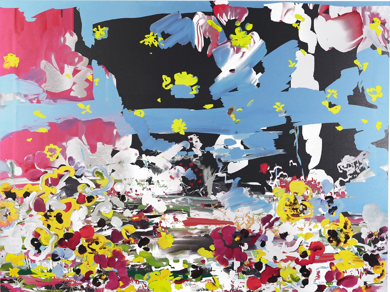 AmericanTaking from the tradition of gestural painting, Los Angeles-based artist Petra Cortright uses floral imagery to recreate Monet-type works on aluminum. But unlike those who preceded her, Cortright is digitally charged in her practice and renders analog images into "digital brushstrokes." She sources her images online and manipulates them in Photoshop in the hopes of constructing a palimpsestic sprawl. With the hint of glitch and a pinch of selfie culture, her work is self-reflexive in that it studies the progression of Abstract Expressionism into our current historical moment.