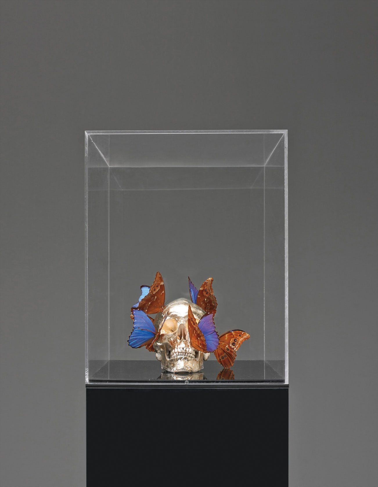 butterflies and acrylic on resin, in artist's Plexiglas box and plinth