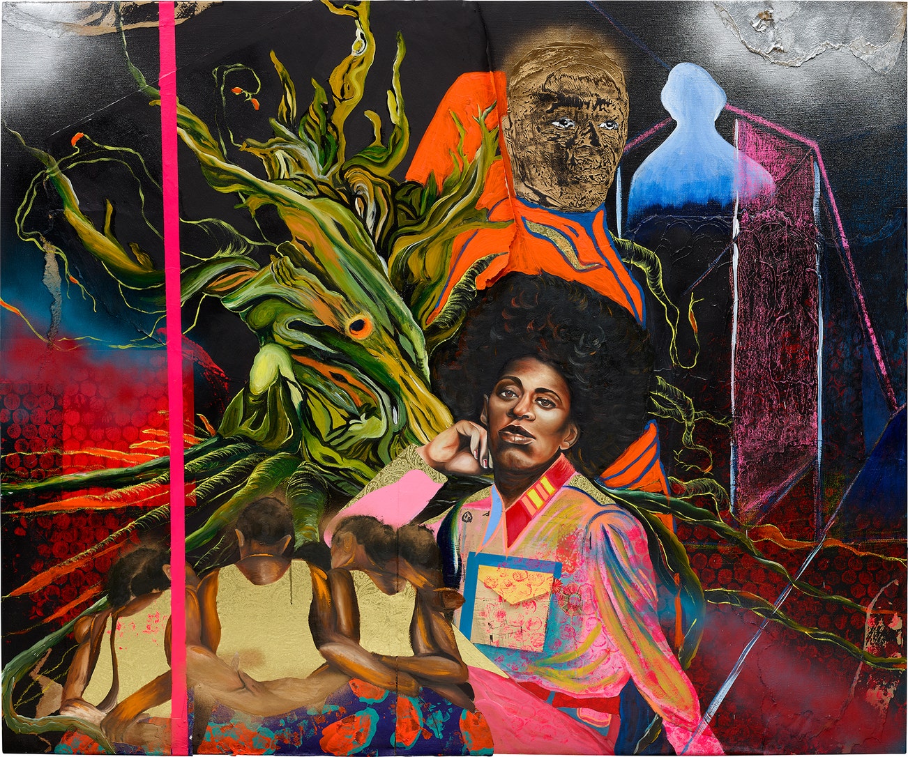 signed, titled and dated '"METHUSELAH THE QUEEN AND FRIENDS" Phumelele Tshabalala 2020' on the reverse
