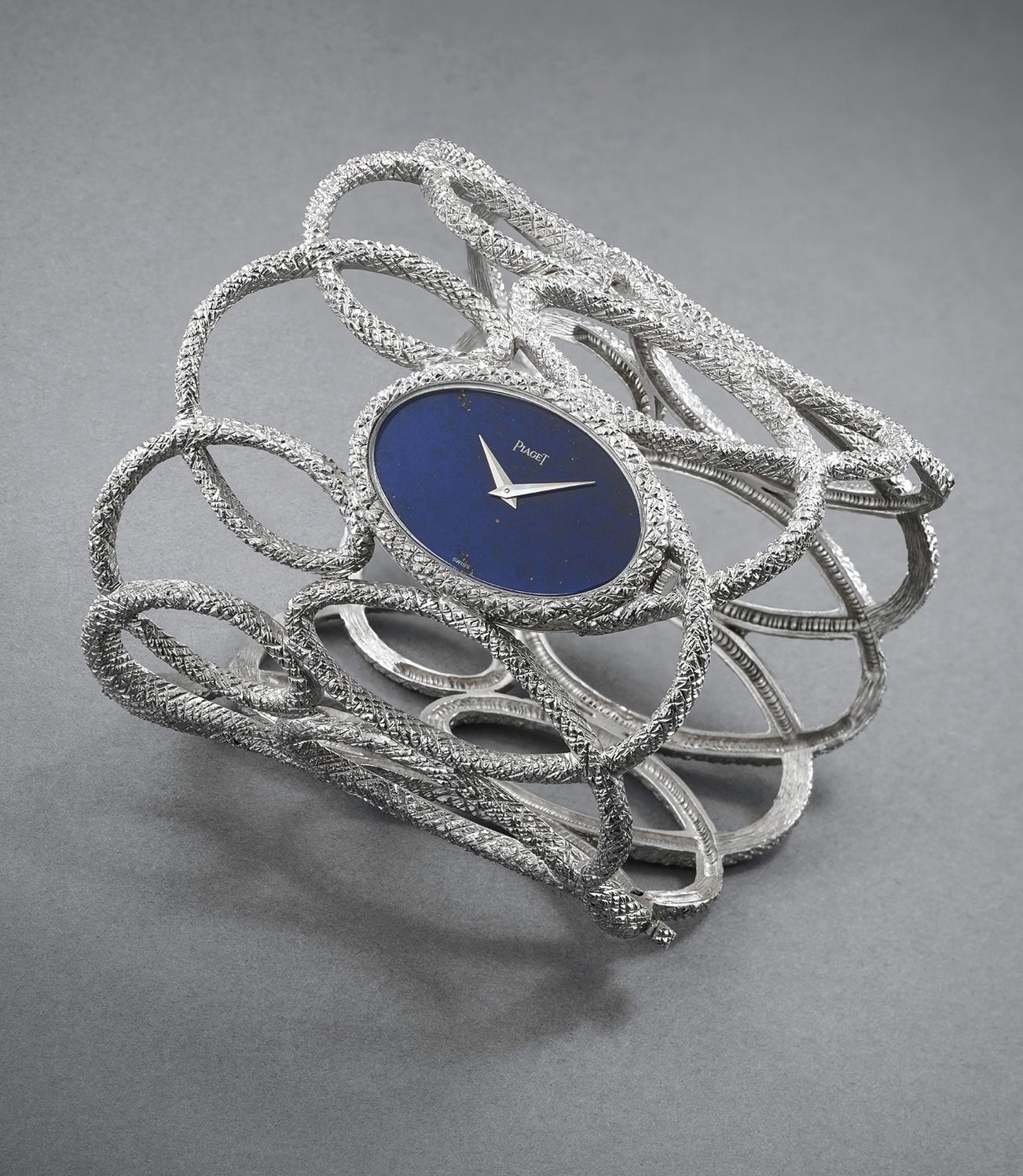 Collectors consider the 1970s as Piaget's era of superb creativity and unbounded designs. During this highly creative period, the brand designed an impressive range of cuff and bracelet watches carved in gold and adorned with exotic hard stones. Admired by most as not only jewelry but also true works of art, the firm's hard stone dial watches remain the most iconic, recognizable and desirable among collectors.