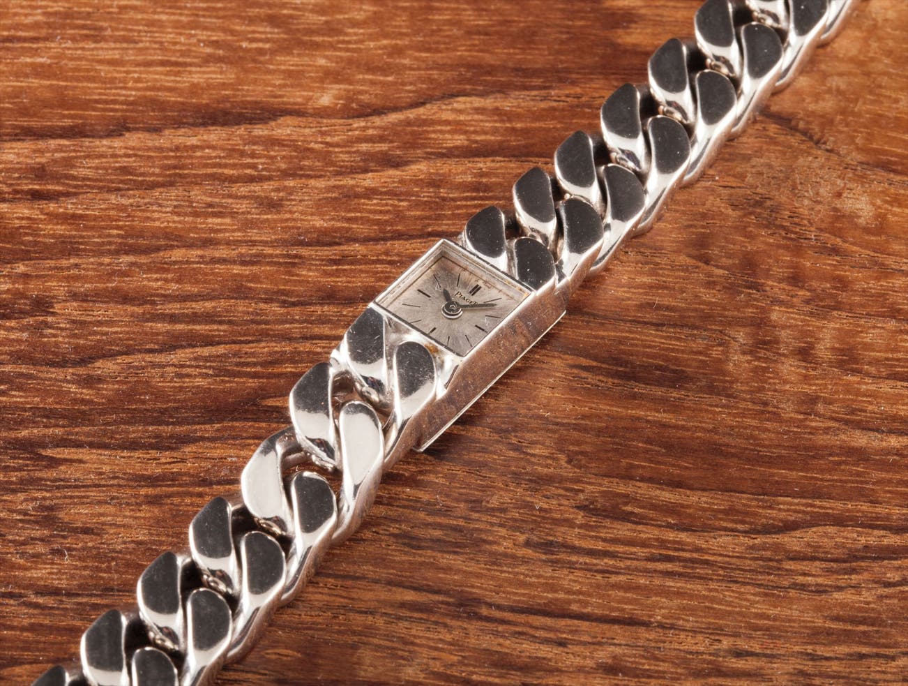 A lady’s rare and heavy white gold bracelet watch with back winding crown