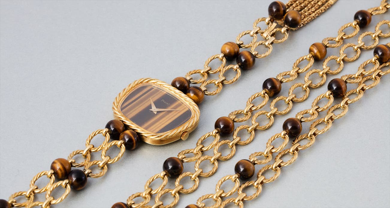 Collectors consider the 1970s as Piaget's era of superb creativity and unbounded designs. During this highly creative period, the brand designed an impressive range of cuff and bracelet watches carved in gold and adorned with exotic hard stones. Admired by most as not only jewelry but also true works of art, the firm's hard stone dial watches remain the most iconic, recognizable and desirable among collectors.