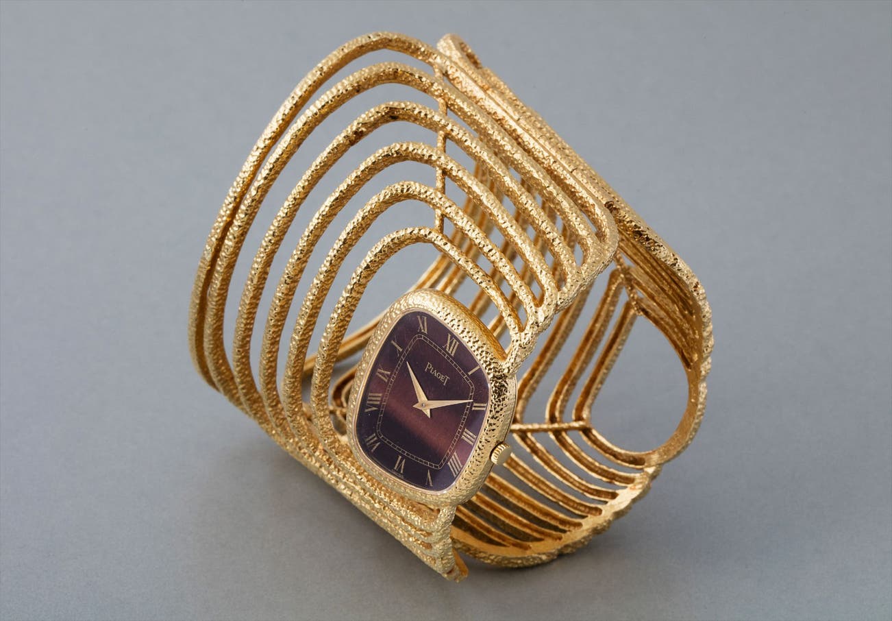 Collectors consider the 1970s as Piaget's era of superb creativity and unbounded designs. During this highly creative period, the brand designed an impressive range of cuff and bracelet watches carved in gold and adorned with exotic hard stones. Admired by most as not only jewelry but also true works of art, the firm's hard stone dial watches remain the most iconic, recognizable and desirable among collectors.