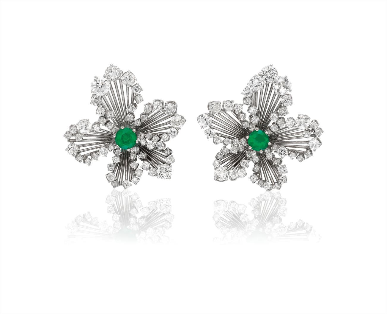 A Pair of Diamond and Emerald Earclips