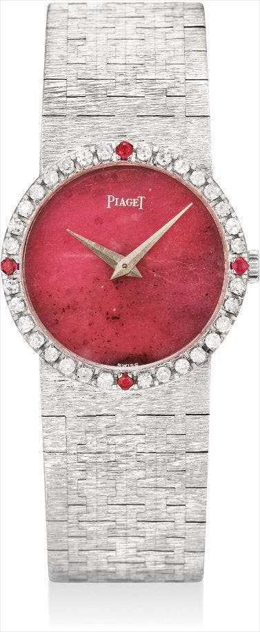 Collectors consider the 1970s as Piaget's era of superb creativity and unbounded designs. During this highly creative period, the brand designed an impressive range of cuff and bracelet watches carved in gold and adorned with exotic hard stones. Admired by most as not only jewelry but also true works of art, the firm's hard stone dial watches remain the most iconic, recognizable and desirable among collectors.