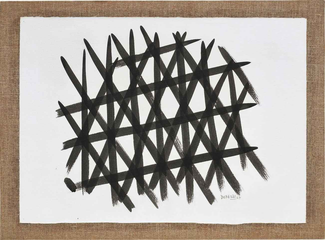 signed and dated 'DORAZIO '64' lower right; further signed, titled and dated 'P. DORAZIO "RETICOLO" 1964' on the reverse