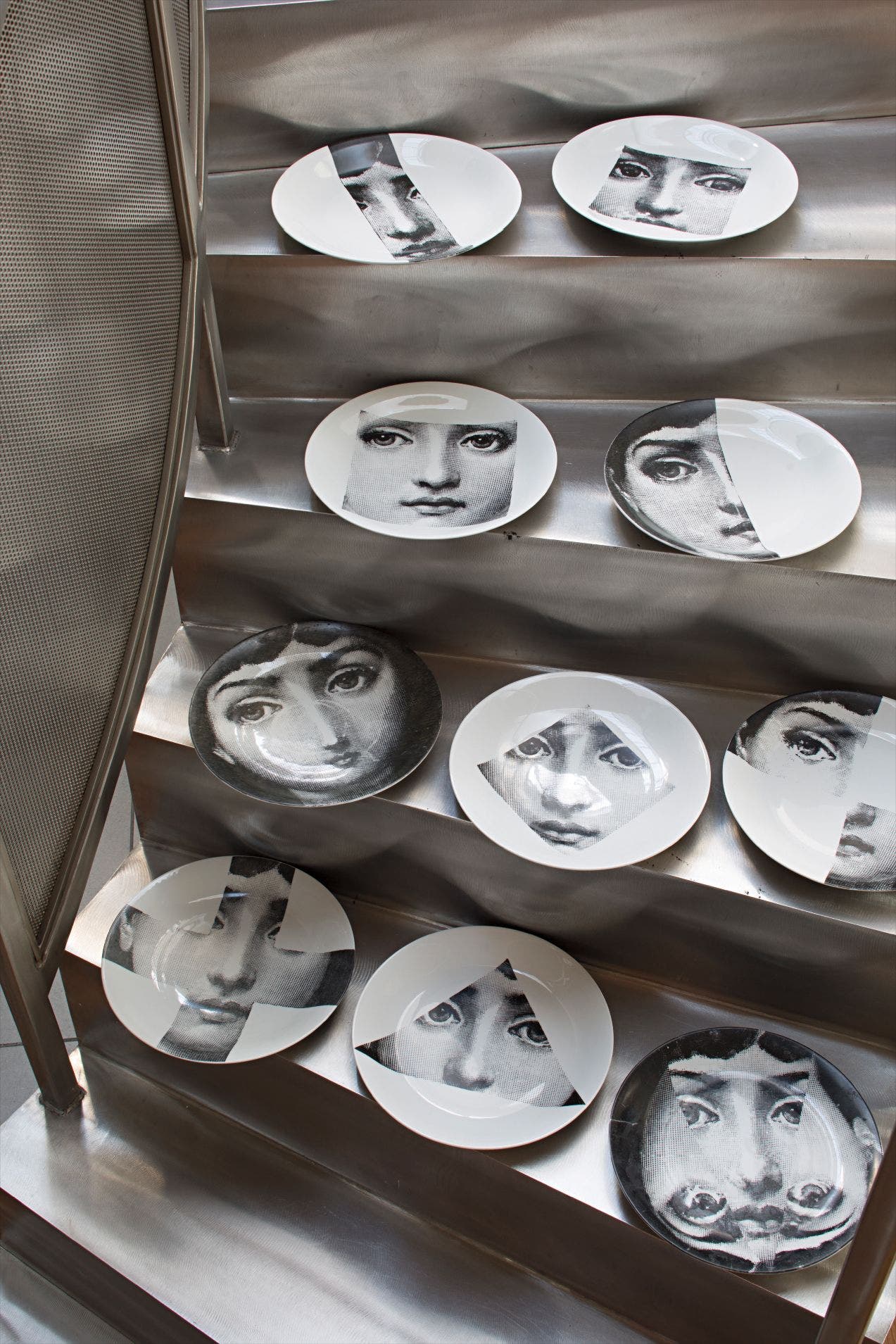 Underside of each transfer-printed TEMA E/VARIAZIONI/FORNASETTI-MILANO/MADE IN ITALY and variously numbered 5, 31, 33, 49, 65, 70, 97, 151, 236 and 240.