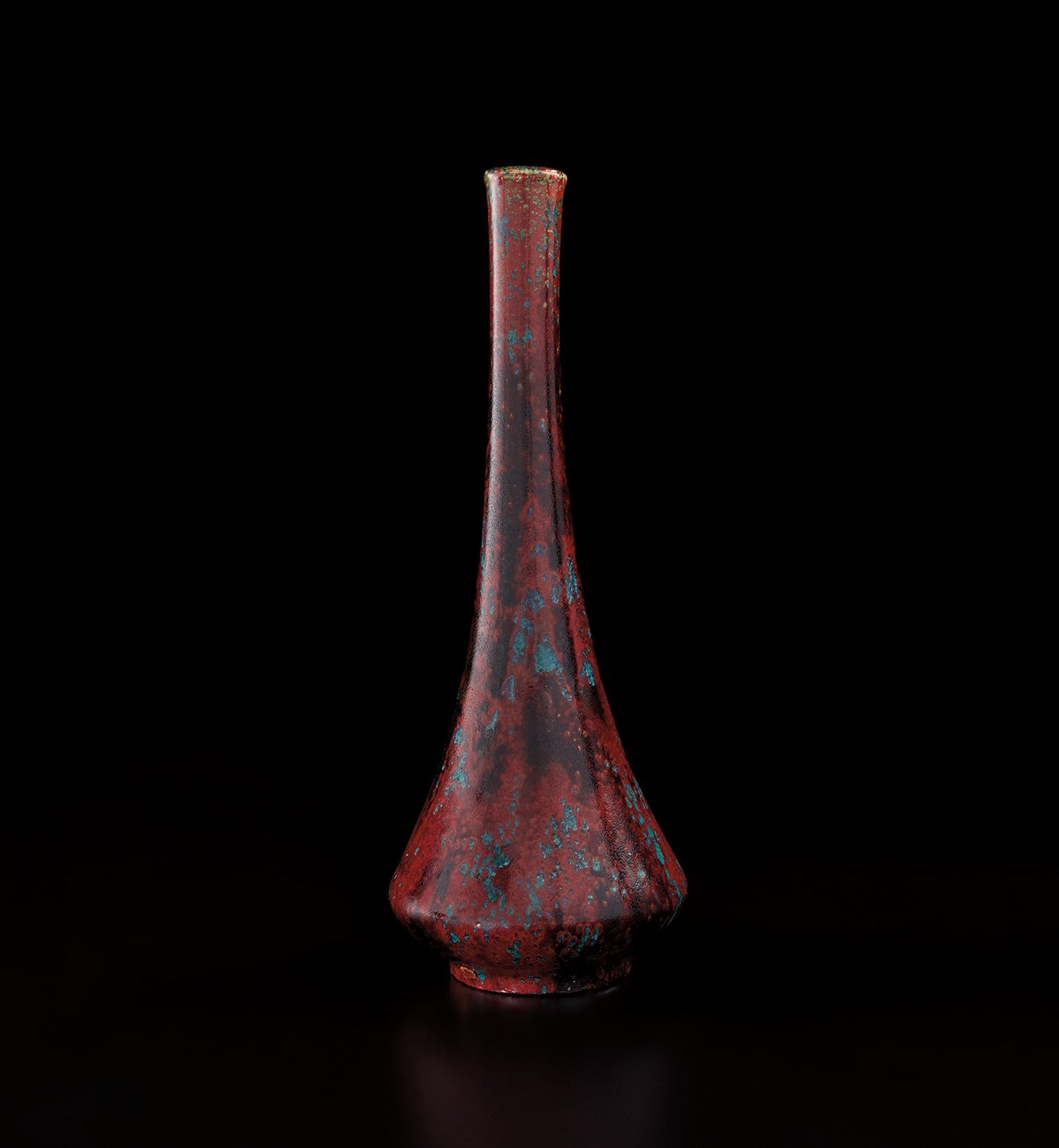 Stoneware, sang de bœuf glaze with highly vitrified green-blue and black jasper coloration.