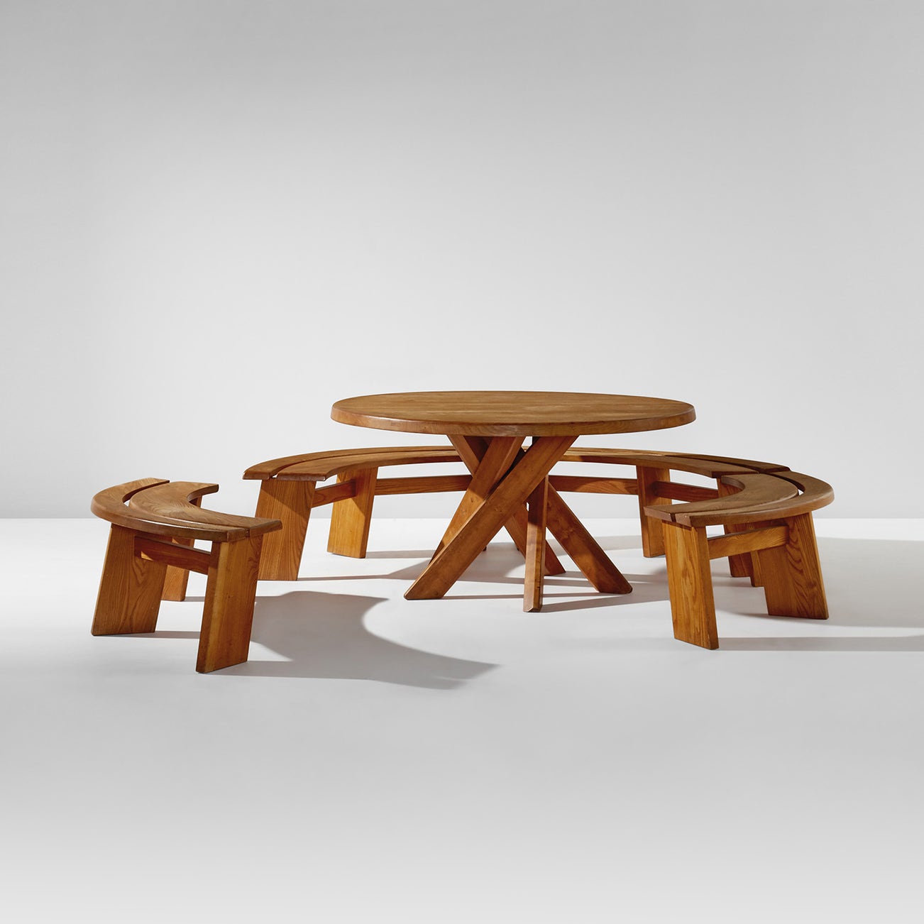 Table, model no. T21 D, and four benches, model no. S38