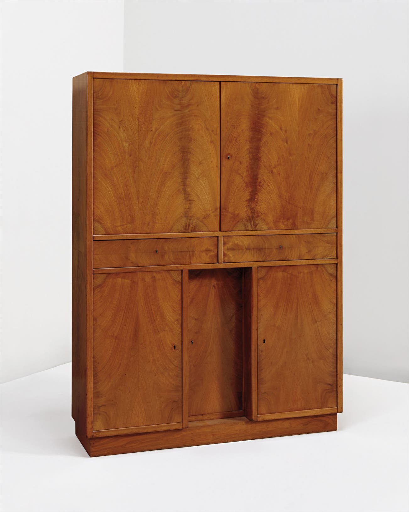 Walnut-veneered wood, mahogany, sapele.