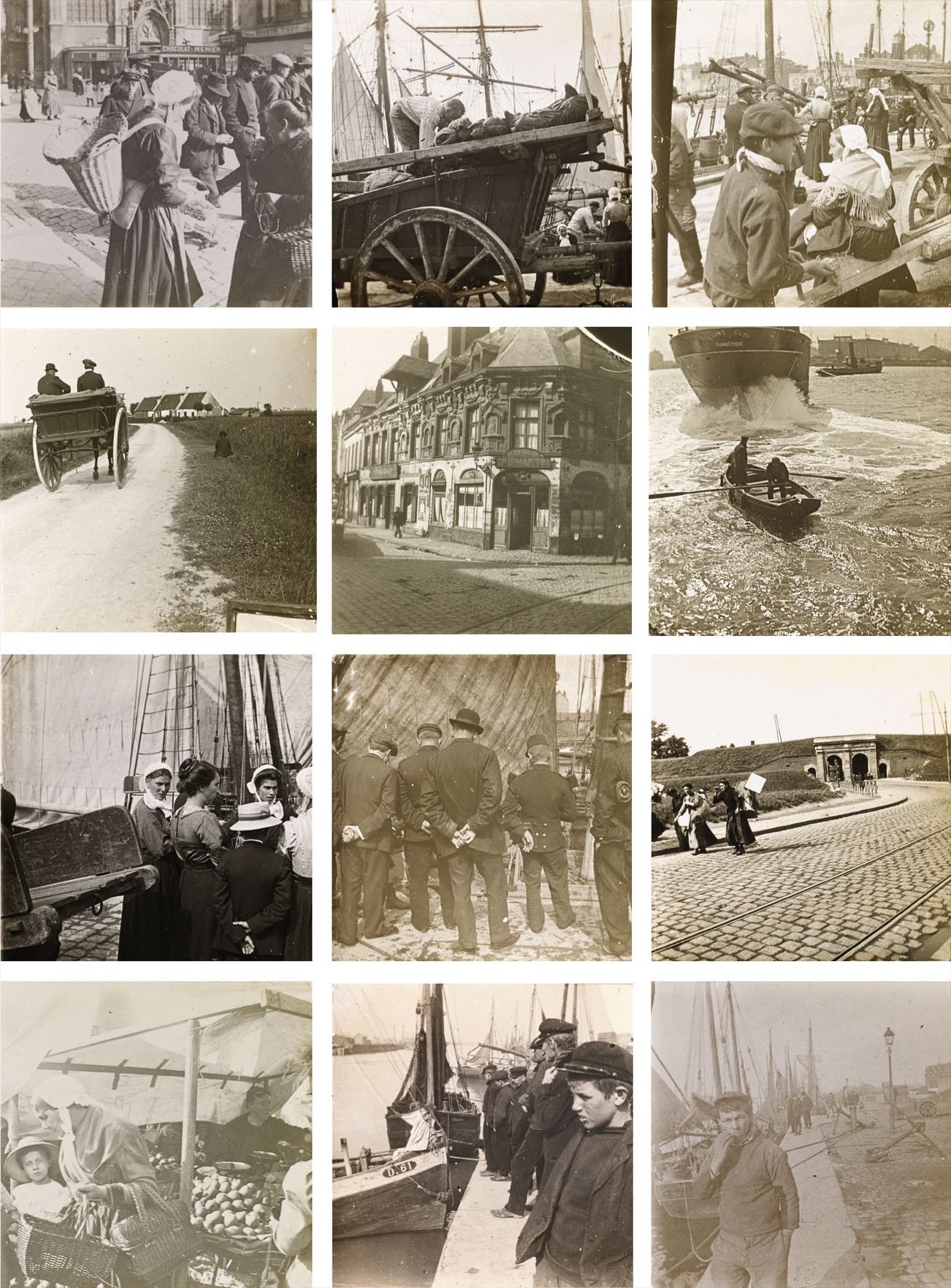 The thriving northern port of Dunkirk provided a multi level playground for a stereo photographer, and Dubreuil took full advantage of foreground, mid-ground and backgrounds. Some of these views were taken on short trips in Holland, and many at home, in Lille, France. Dubreuil's interest in horses and horse-carts is manifestly evident, as is his amazing ability to compose complex groups of figures. All these works show his uncanny feeling for forms in space.