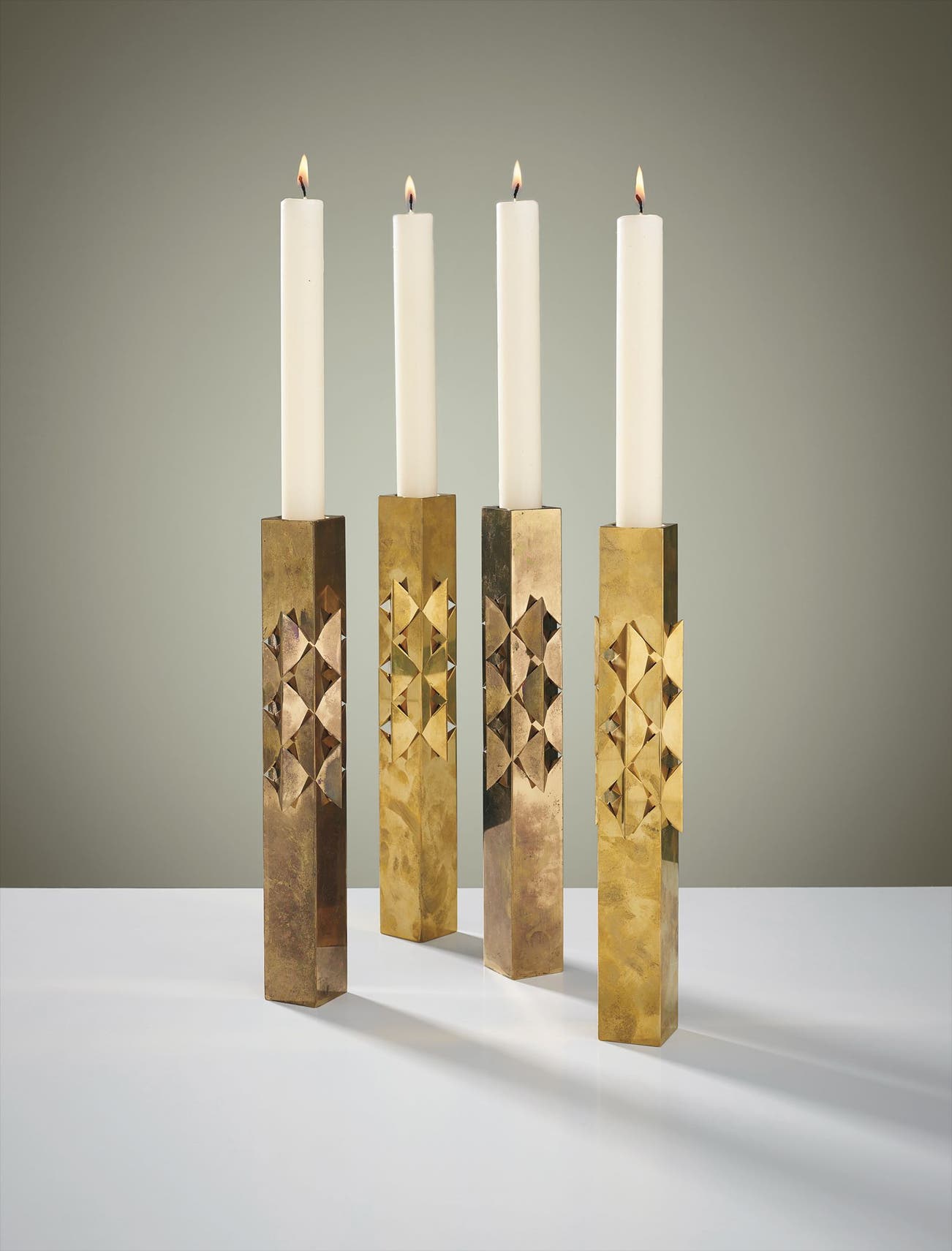 Cast by Skultuna Messingsbruk AB, Skultuna, Sweden. From the production of 20. Each underside with manufacturer's mark SKULTUNA/1607 and two impressed with F and 4.