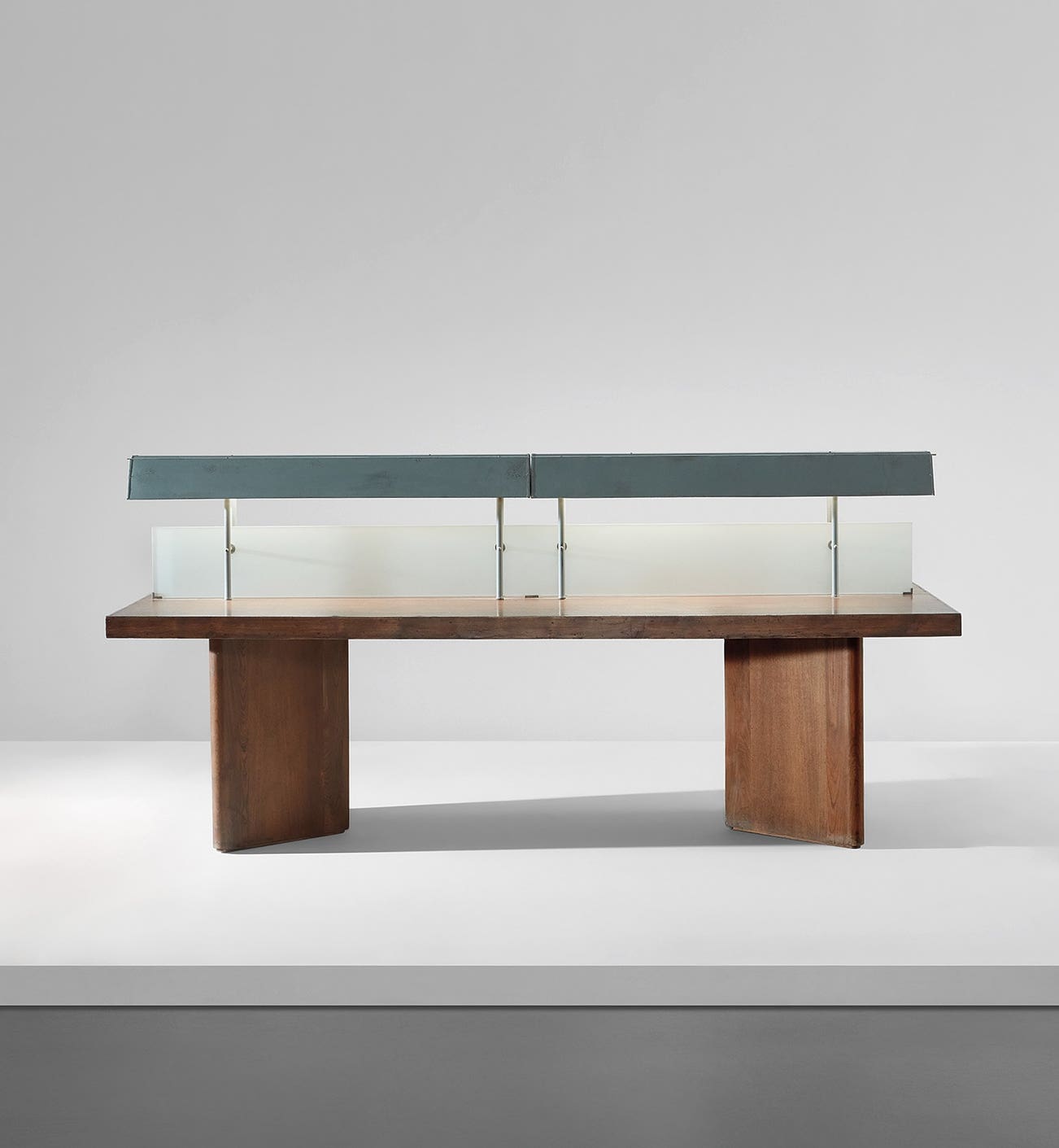 While Vanderbilt and Stickley's library tables were luxury products, albeit in very different ways, the present illuminated reading table is design with a social conscience, created to serve a large population. Through an economy of means that emphasizes form and surface over ornament, Jeanneret achieved his own elegant interpretation of what a library table can represent.